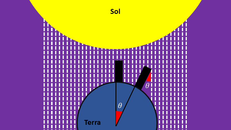 Erastóstenes observou que ao meio dia o sol estava no zênite (posição logo acima da cabeça de um obserador) ele não produzia sombra na cidade de Siena (hoje Assunção) cidade que hoje pertence ao Egito. No entanto, na mesma época do ano quando o sol estava na posição mais alta no céu na cidade de Alexandria, havia a formação de sombras. Dito de outra forma, se uma pessoa encontra-se literalmente no fundo de um poço, era possível observar o sol em Siena mas não em Alexandria.