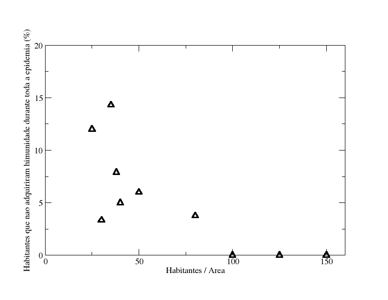 O motivo de eu exibir um gráfico para as pessoas não infectadas (veja o “glossário” acima) é simples, como elas nunca tiveram contato com a doença elas possivelmente continuam vulneráveis à doença por não terem adquirido anticorpos. Observe que quando a densidade populacional atinge um determinado patamar, não há pessoas que não tenham tido contato com a doença. Outra detalhe que pelo menos para min é bastante contra intuitivo é que mesmo as regiões pouco densas populacionalmente terem um tempo total de epidemia maior, ainda assim tem o maior número de não infectados.