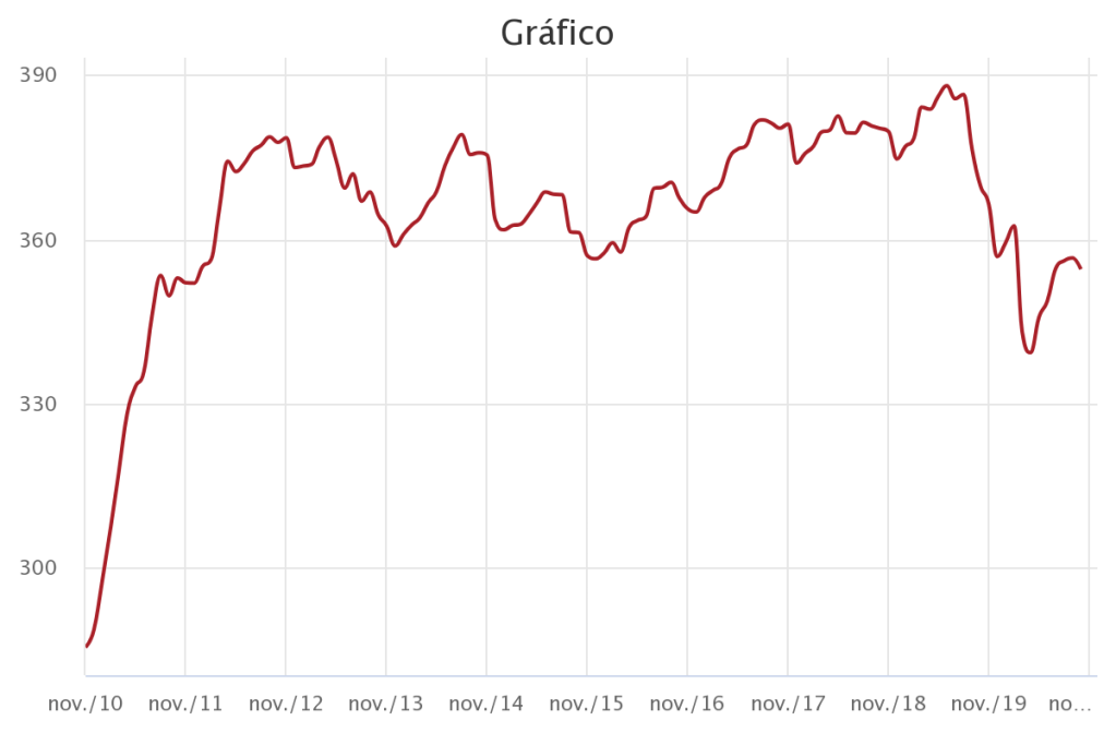 O gráfico abaixo representa o volume das reservas financeiras internacionais em bilhões de dólares.