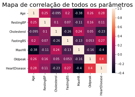 Os parâmetros usados para alimentar o modelo são baseados na idade, sexo, tipo de dor no peito, colesterol, pressão sanguínea em repouso, nível de açúcar no sangue em jejum, eletrocardiograma, máxima taxa de batimento cardíaco, presença (ou ausência) de dor no peito, entre outros parâmetros.