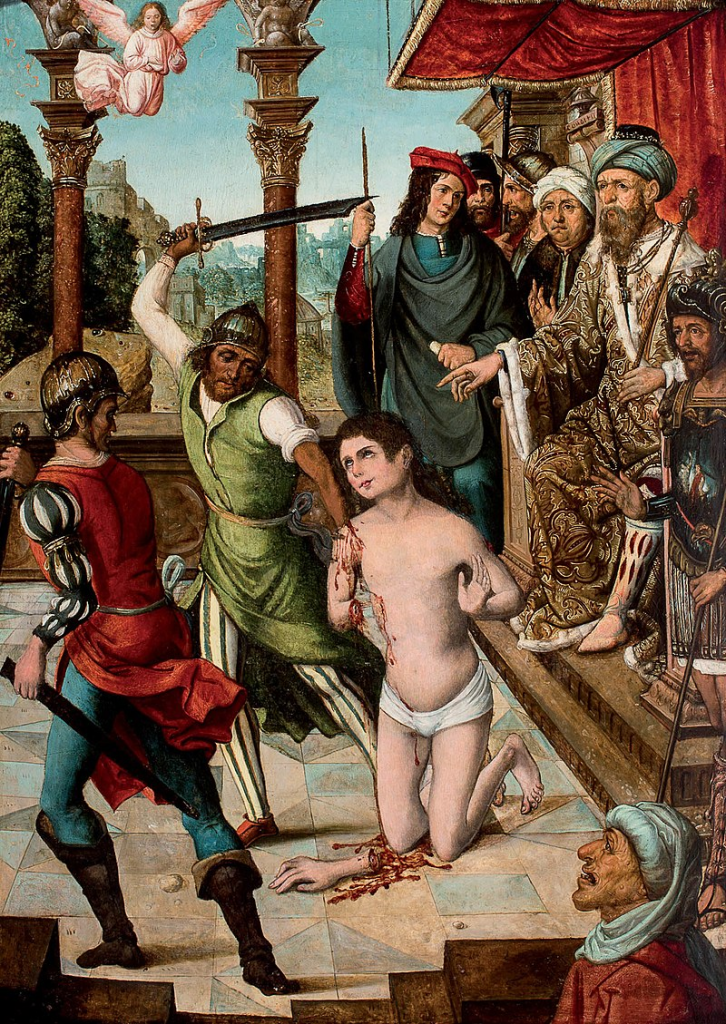 Após ter confrontado aquele senhor detentor da imoralidade, o mártir foi cortado em pedaços tendo os braços e os pés arrancados, e, por fim, decapitado e lançado a um rio.”